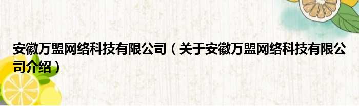 安徽萬盟網絡科技有限公司(關于安徽萬盟網絡科技有限公司介紹)