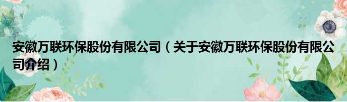 安徽萬聯環保股份有限公司(關于安徽萬聯環保股份有限公司介紹)