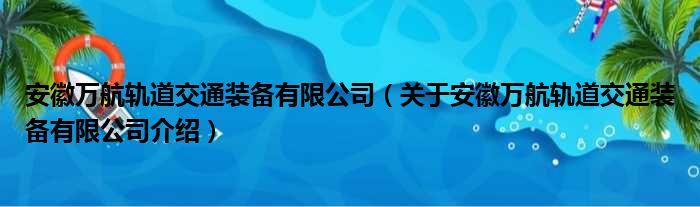 安徽萬航軌道交通裝備有限公司(關于安徽萬航軌道交通裝備有限公司介紹)