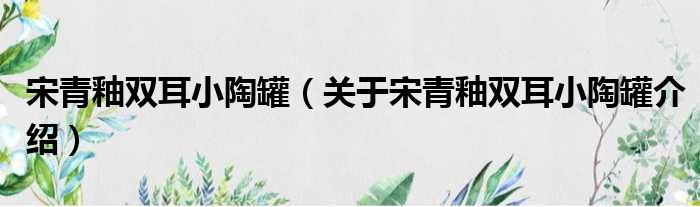 宋青釉雙耳小陶罐(關于宋青釉雙耳小陶罐介紹)