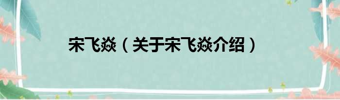 大家好,小耀來為大家解答以上的問題。宋飛焱,關于宋飛焱介紹這個很多人還不知道,現在讓我們一起來看看吧!