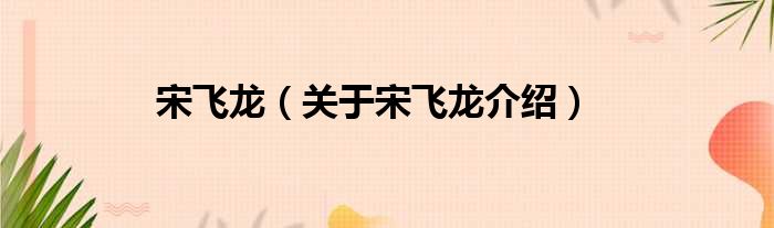 大家好,小耀來為大家解答以上的問題。宋飛龍,關于宋飛龍介紹這個很多人還不知道,現在讓我們一起來看看吧!