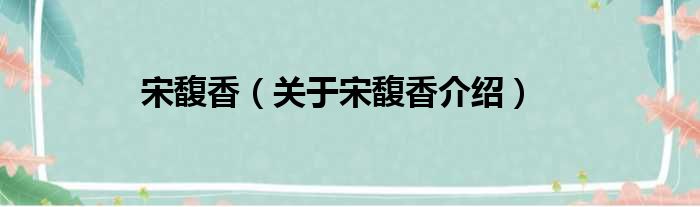 大家好,小耀來為大家解答以上的問題。宋馥香,關于宋馥香介紹這個很多人還不知道,現在讓我們一起來看看吧!