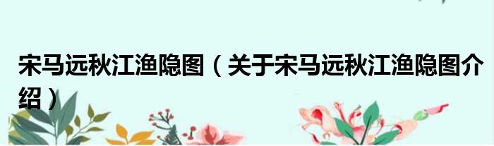 宋馬遠秋江漁隱圖(關于宋馬遠秋江漁隱圖介紹)