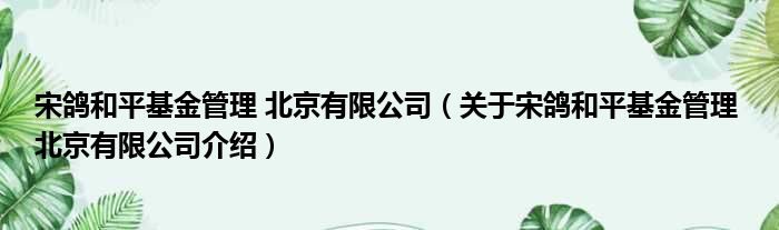 宋鴿和平基金管理 北京有限公司(關于宋鴿和平基金管理 北京有限公司介紹)