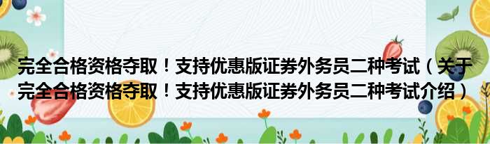 完全合格資格奪取!支持優惠版證券外務員二種考試(關于完全合格資格奪取!支持優惠版證券外務員二種考試介紹)
