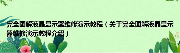 完全圖解液晶顯示器維修演示教程(關于完全圖解液晶顯示器維修演示教程介紹)
