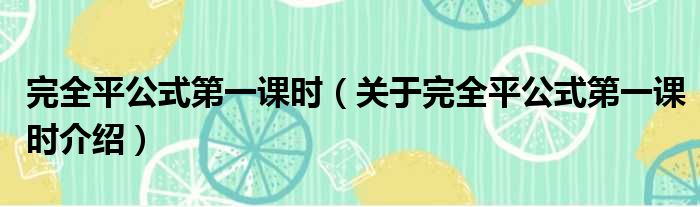完全平公式第一課時(關于完全平公式第一課時介紹)
