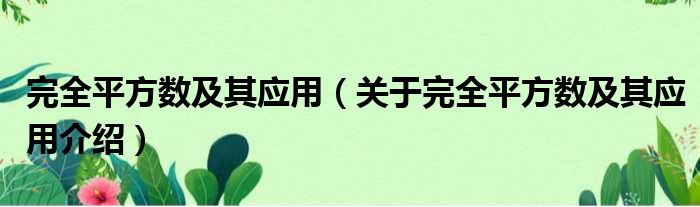 完全平方數及其應用(關于完全平方數及其應用介紹)