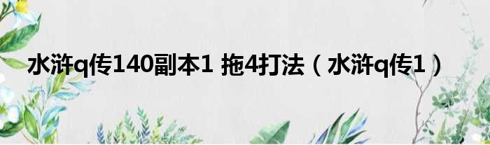 大家好,我是小華,我來為大家解答以上問題。水滸q傳140副本1 拖4打法,水滸q傳1很多人還不知道,現在讓我們一起來看看吧!