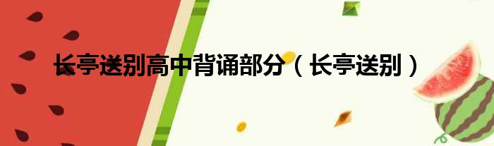 大家好,我是小夏,我來為大家解答以上問題。長亭送別高中背誦部分,長亭送別很多人還不知道,現在讓我們一起來看看吧!