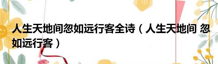 人生天地間忽如遠行客全詩(人生天地間 忽如遠行客)