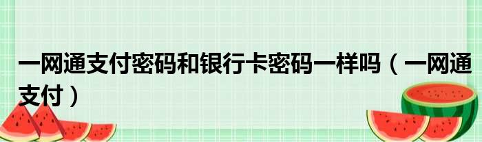 一網通支付密碼和銀行卡密碼一樣嗎(一網通支付)