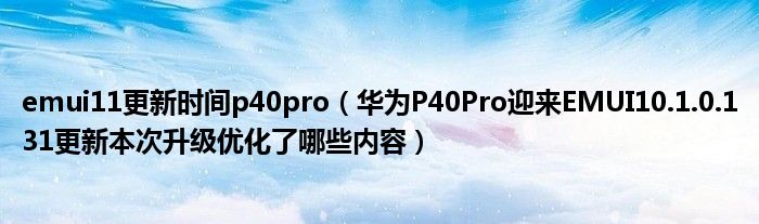 emui11更新時間p40pro(華為P40Pro迎來EMUI10.1.0.131更新本次升級優化了哪些內容)