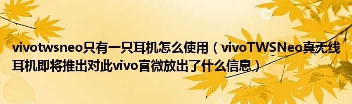 vivotwsneo只有一只耳機怎么使用(vivoTWSNeo真無線耳機即將推出對此vivo官微放出了什么信息)