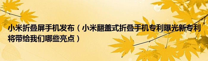 導讀 大家好,小品為大家解答以上小米折疊屏手機發布,小米翻蓋式折疊手機專利曝光新專利將帶給我們哪些亮點的問題,也是到網上收集了關于小米折