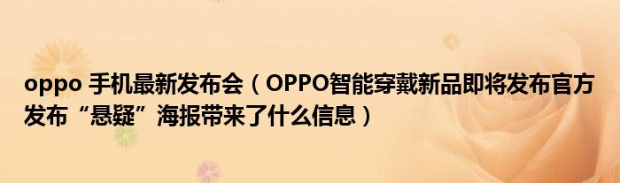 oppo 手機最新發布會(OPPO智能穿戴新品即將發布官方發布“懸疑”海報帶來了什么信息)