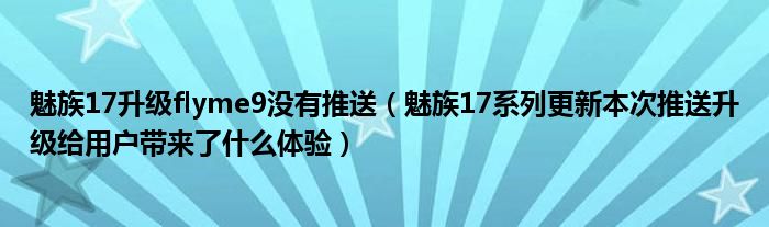 導讀 大家好,小品為大家解答以上魅族17升級flyme9沒有推送,魅族17系列更新本次推送升級給用戶帶來了什么體驗的問題,也是到網上收集了關于魅族