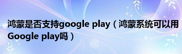 鴻蒙是否支持google play(鴻蒙系統可以用Google play嗎)