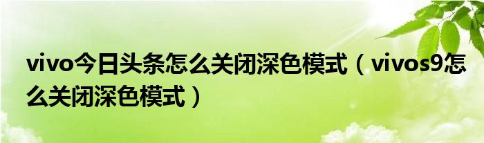 vivo今日頭條怎么關閉深色模式(vivos9怎么關閉深色模式)