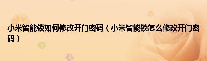 小米智能鎖如何修改開門密碼(小米智能鎖怎么修改開門密碼)