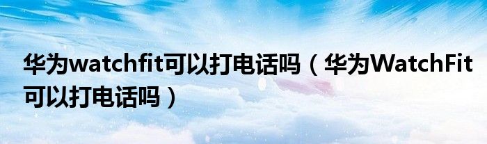 華為watchfit可以打電話嗎(華為WatchFit可以打電話嗎)