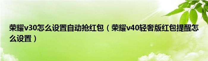 榮耀v30怎么設置自動搶紅包(榮耀v40輕奢版紅包提醒怎么設置)
