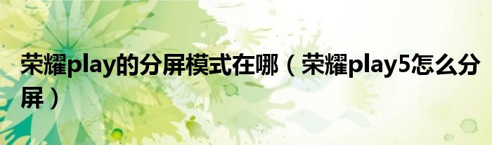 榮耀play的分屏模式在哪(榮耀play5怎么分屏)