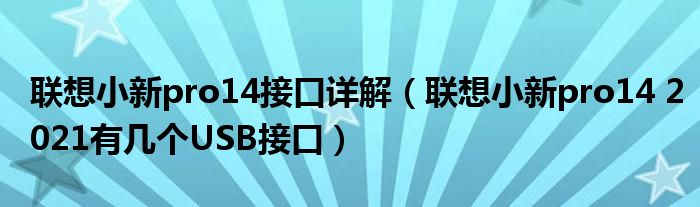 導讀 大家好,小迷為大家解答以上聯想小新pro14接口詳解,聯想小新pro14 2021有幾個USB接口的問題,也是到網上收集了關于聯想小新pro14接口詳解