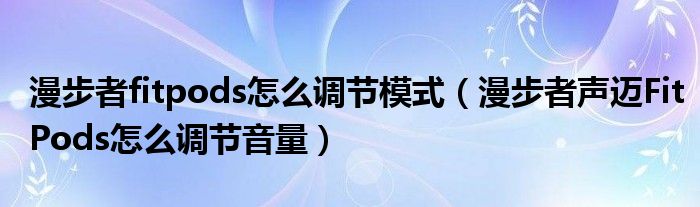 漫步者fitpods怎么調節模式(漫步者聲邁FitPods怎么調節音量)