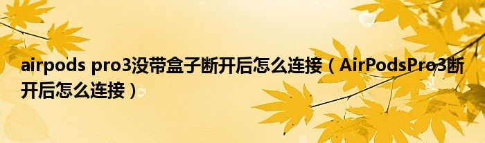 airpods pro3沒帶盒子斷開后怎么連接(AirPodsPro3斷開后怎么連接)