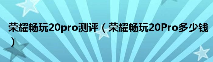 榮耀暢玩20pro測評(榮耀暢玩20Pro多少錢)