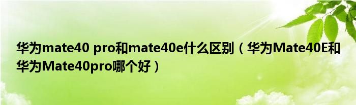 華為mate40 pro和mate40e什么區別(華為Mate40E和華為Mate40pro哪個好)