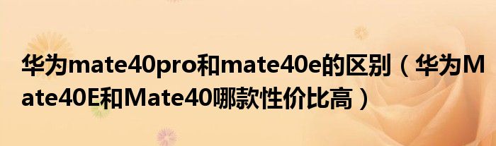 華為mate40pro和mate40e的區別(華為Mate40E和Mate40哪款性價比高)