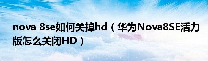 導讀 大家好,小迷為大家解答以上nova 8se如何關掉hd,華為Nova8SE活力版怎么關閉HD的問題,也是到網上收集了關于nova 8se如何關掉hd,華為Nov