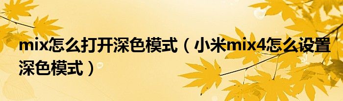 mix怎么打開深色模式(小米mix4怎么設置深色模式)