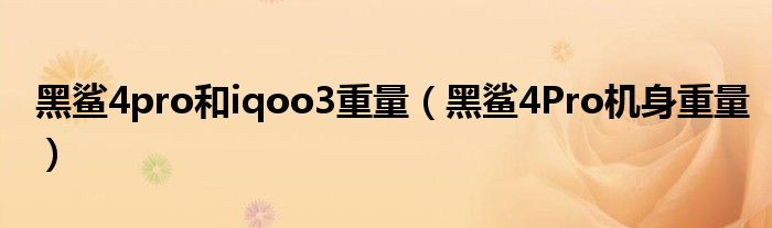 黑鯊4pro和iqoo3重量(黑鯊4Pro機身重量)