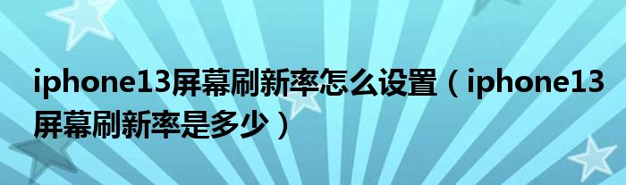 iphone13屏幕刷新率怎么設置(iphone13屏幕刷新率是多少)
