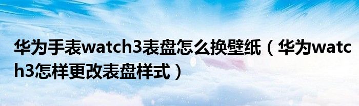 華為手表watch3表盤怎么換壁紙(華為watch3怎樣更改表盤樣式)
