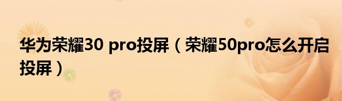 華為榮耀30 pro投屏(榮耀50pro怎么開啟投屏)