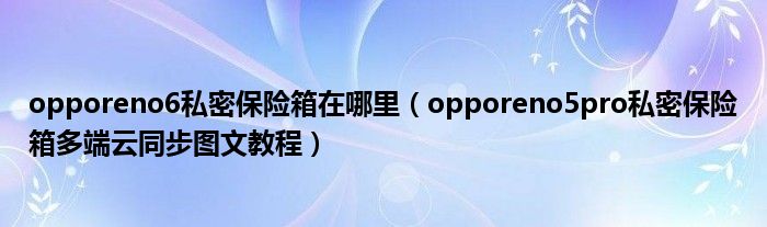 導讀 大家好,小迷為大家解答以上opporeno6私密保險箱在哪里,opporeno5pro私密保險箱多端云同步圖文教程的問題,也是到網上收集了關于opporeno6