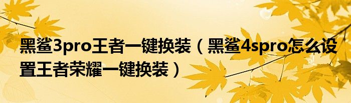 黑鯊3pro王者一鍵換裝(黑鯊4spro怎么設置王者榮耀一鍵換裝)
