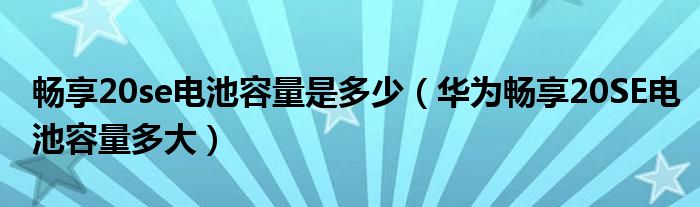 導讀 大家好,小迷為大家解答以上暢享20se電池容量是多少,華為暢享20SE電池容量多大的問題,也是到網上收集了關于暢享20se電池容量是多少,華為