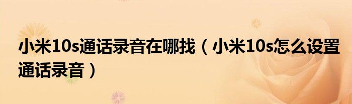小米10s通話錄音在哪找(小米10s怎么設置通話錄音)