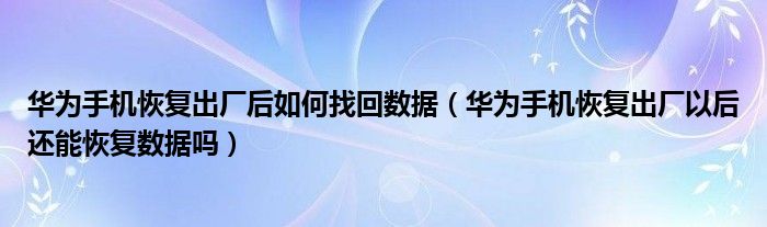 華為手機恢復出廠后如何找回數據(華為手機恢復出廠以后還能恢復數據嗎)
