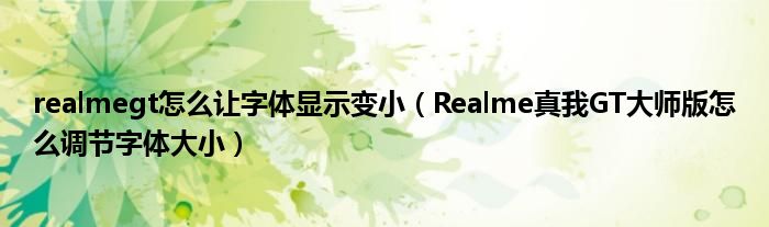 導讀 大家好,小迷為大家解答以上realmegt怎么讓字體顯示變小,Realme真我GT大師版怎么調節字體大小的問題,也是到網上收集了關于realmegt怎么讓