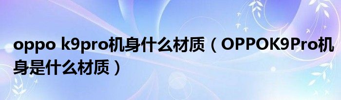 oppo k9pro機身什么材質(OPPOK9Pro機身是什么材質)