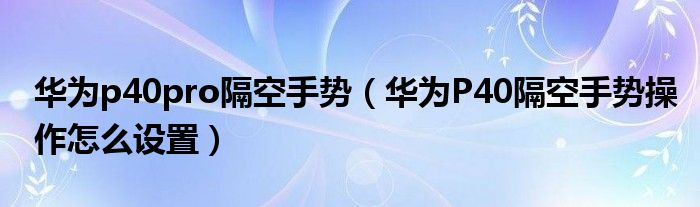 華為p40pro隔空手勢(華為P40隔空手勢操作怎么設置)