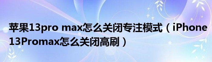 蘋果13pro max怎么關閉專注模式(iPhone13Promax怎么關閉高刷)