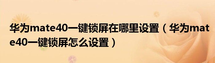 華為mate40一鍵鎖屏在哪里設置(華為mate40一鍵鎖屏怎么設置)